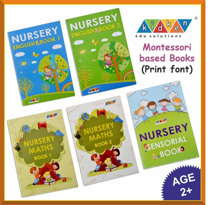 - Format: Set of 5 books (English Print 1 & 2, Maths 1 & 2, Sensorial)